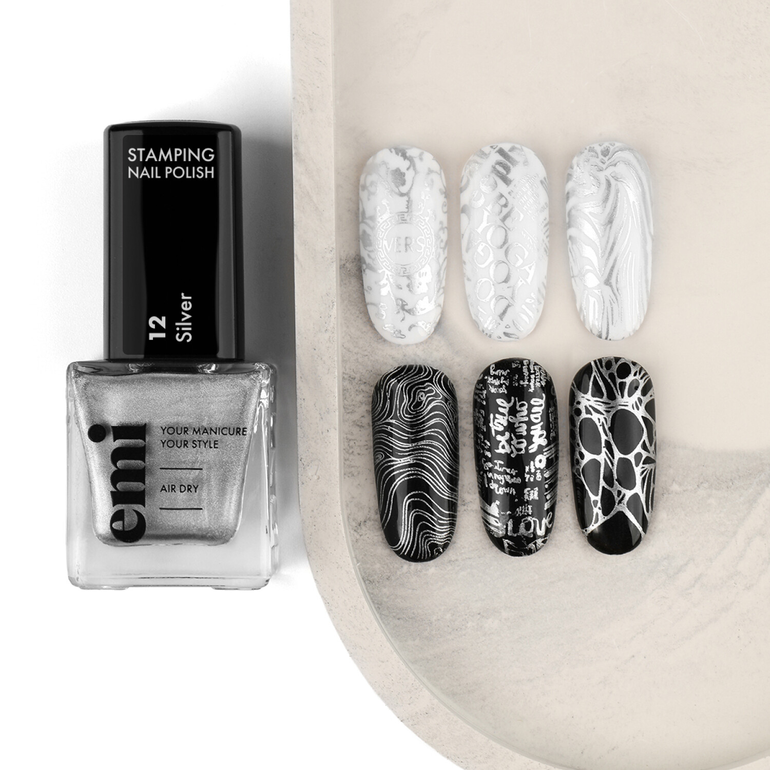 En comparación con los esmaltes efecto gel ultra fuertes, los esmaltes de uñas para estampación tienen una fórmula más pigmentada, proporcionando un color rico y denso para crear un diseño uniforme y contrastante sobre cualquier base.